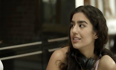 Ash-blonde teen Rika Fane and Sofi Vega romantic lesbian fuck-a-thon with beautiful black girl best friend